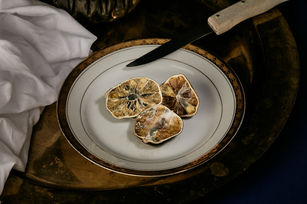 En alimentant mes séries de photographies culinaires m’est venue l’idée de ces images. Je voulais montrer du beau, mais du beau difficile d’accès. Chercher la bonne lumière, les bons accessoires, les bonnes couleurs, les bonnes textures, le bon point de vue, le bon aliment ou le bon déchet… Et, avec beaucoup de plaisir, essayer de sublimer ce modèle du déclin du vivant, que notre culture nous a appris à trouver répugnant.